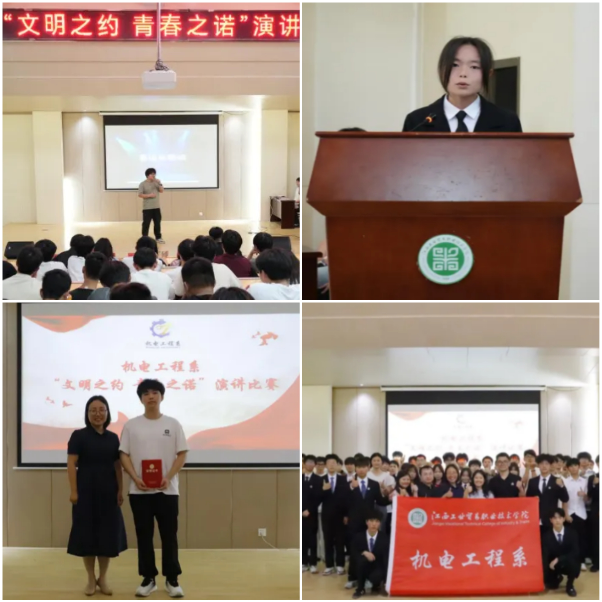 机电工程系同样以“文明之约,青春之诺”主题演讲比赛为载体,让学生们在演讲中深入理解文明行为的内涵和意义。选手们用生动的语言和真实事例,讲述了文明行为在日常中的重要性,呼吁大家从自身做起,从点滴做起,做文明的践行者和传播者。