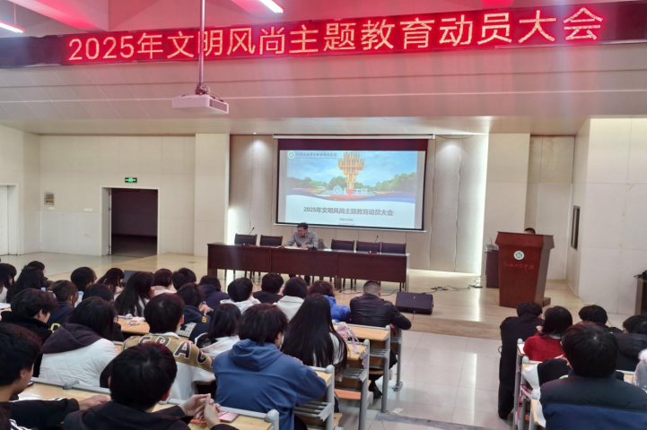 为强化学生文明养成自主意识,推动文明行为习惯常态化养成,着力整治校园不文明现象,12月8日下午17:50,学生工作处在志学楼504室召开2025年校园文明新风尚主题教育学生动员大会。学工处处长罗卫兵作动员部署,院系学工队伍及主要学生干部共460余人参加会议。