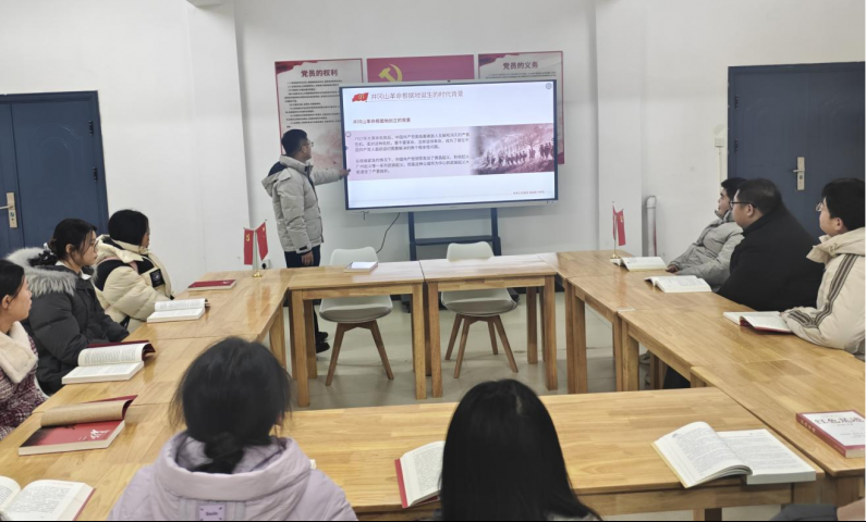 为深化红色文化育人实效,引导青年学子从红色经典与家乡记忆中汲取奋进力量,1月21日,第三期“品红色经典,传革命薪火”读书分享会在11-12栋党建活动室顺利举行。活动由主讲人高明老师围绕红色文化主题展开深入讲解,15名学生共同参与,在沉浸式学习中感悟、传承红色基因。