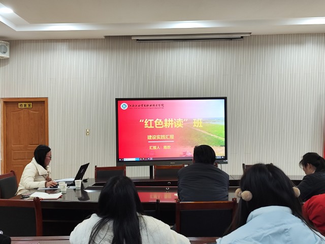 评审会上,各红色班级负责人通过PPT展示,依次围绕红色班级的名称由来、班级建设情况、育人理念、特色活动、工作成效、问题不足及未来规划等方面展开详细汇报。如粮油建艺系“星火粮安班”将红色基因融入粮食安全守护工作;机电工程系“红色耕读班”结合学校粮食文化特色及工业机器人技术国双高专业群定位,构建红色铸魂、专业赋能、实践建功的育人体系;信息工程系“红盾先锋班”将红色精神融入班级思想建设、班风学风、志愿实践全过程;旅游商务系“井冈红旅班”坚持以红铸魂、以文化人、以技立身,构建“八维育人”模式,赋能学生成长成才。