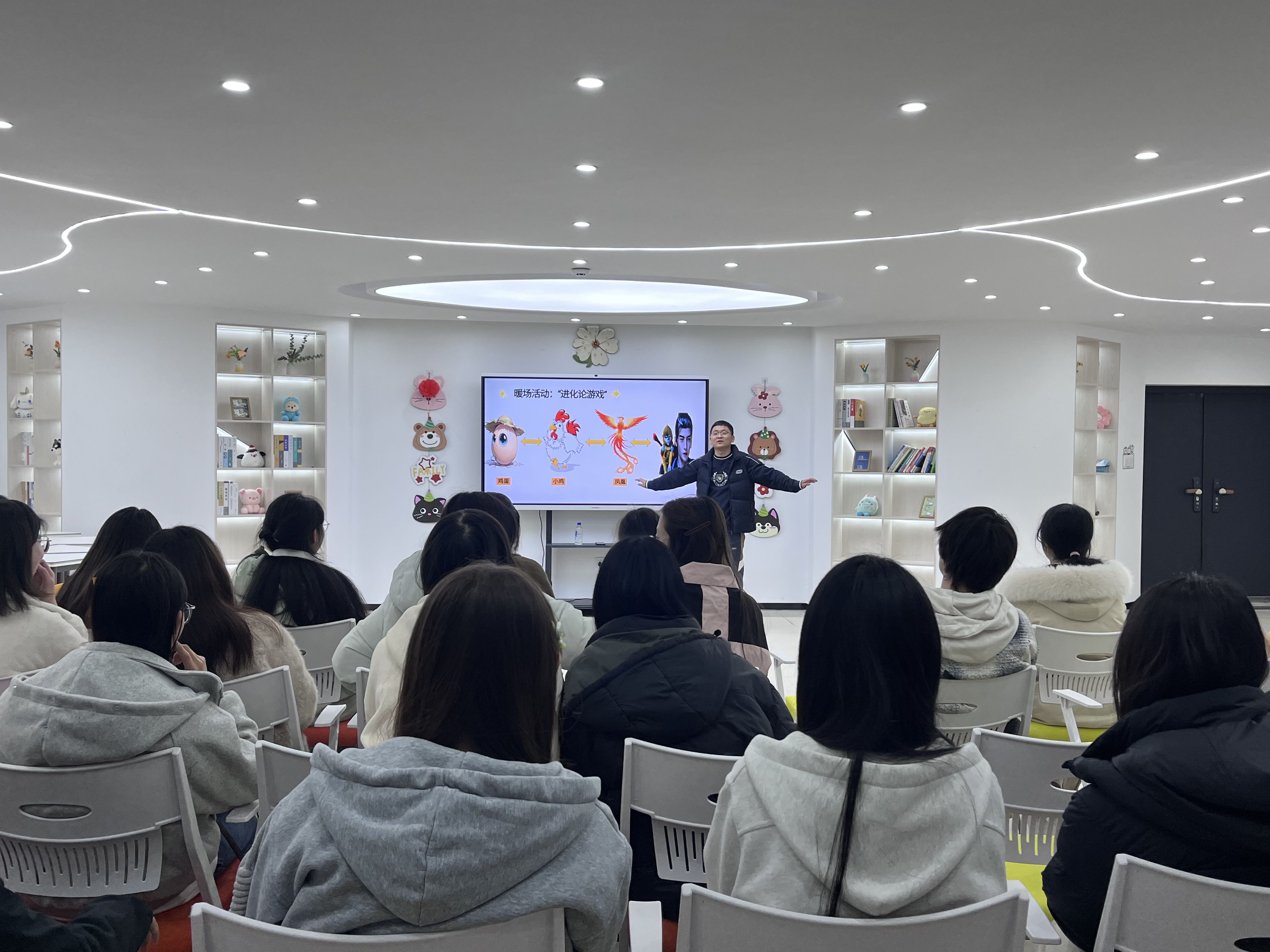 活动伊始,高老师精心设计“自然进化论”暖场环节,通过趣味互动游戏引导学生快速破冰、相互熟悉。同学们踊跃参与、默契配合,在欢声笑语中放松身心、消除陌生感,不仅为后续活动奠定良好基础,更在互动中体会到合作与陪伴的温暖,逐渐打开心扉。