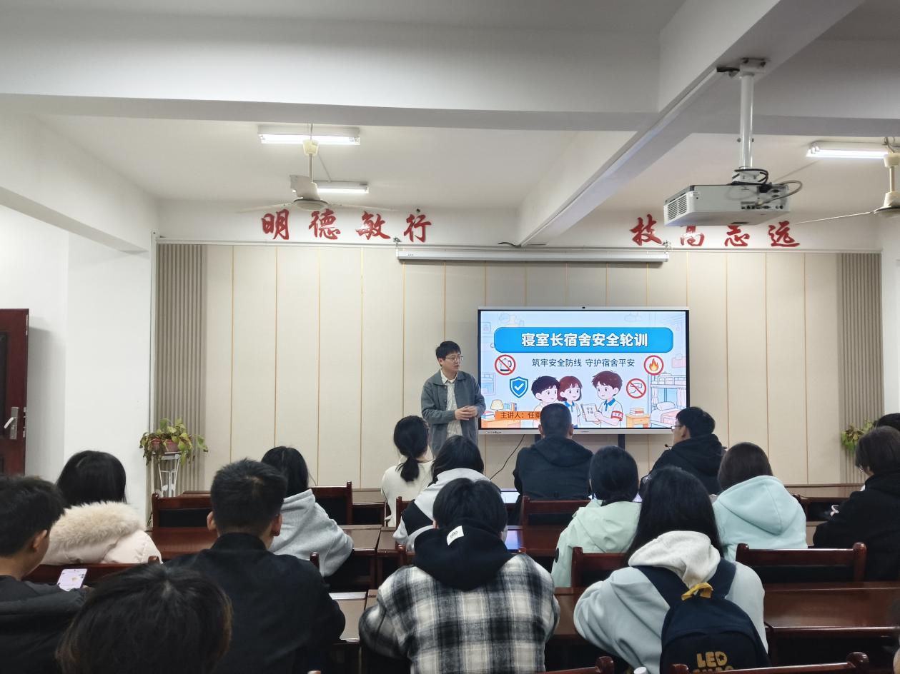 为进一步提升学生安全用电意识,筑牢校园安全防线,防范和遏制各类宿舍安全隐患,学生社区于3月26日18:00在学生宿舍5-6栋学生活动室,组织开展了2026年第二期学生宿舍安全教育讲座,共有33名寝室长参加。