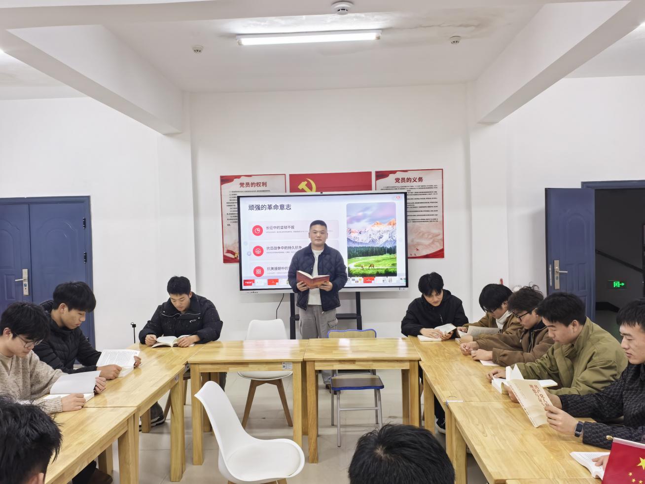红色基因代代传,初心如磐向未来。为深入学习贯彻习近平新时代中国特色社会主义思想,赓续红色血脉、厚植爱国情怀,3月26日,以传承中国共产党的红色基因为主题的读书分享会在11-12栋学生社区党建活动室顺利开展。王志鹏老师带领17名同学共读《传承中国共产党的红色基因》,在文字中回望党史征程,在交流中感悟精神力量,让红色基因融入青春血脉。